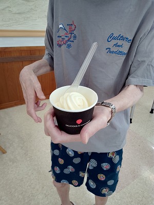 7月8月は暑い日が続くため、アイスクリームを作る機械で皆さんで食べました!